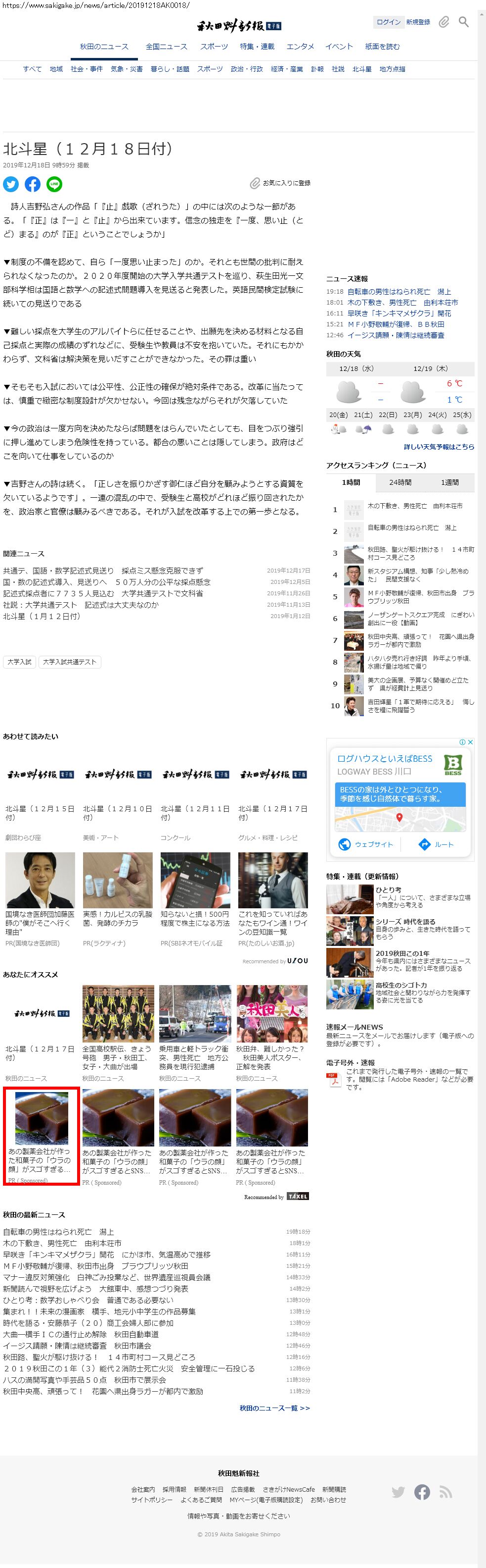 Webメディア 広告枠に赤枠付き