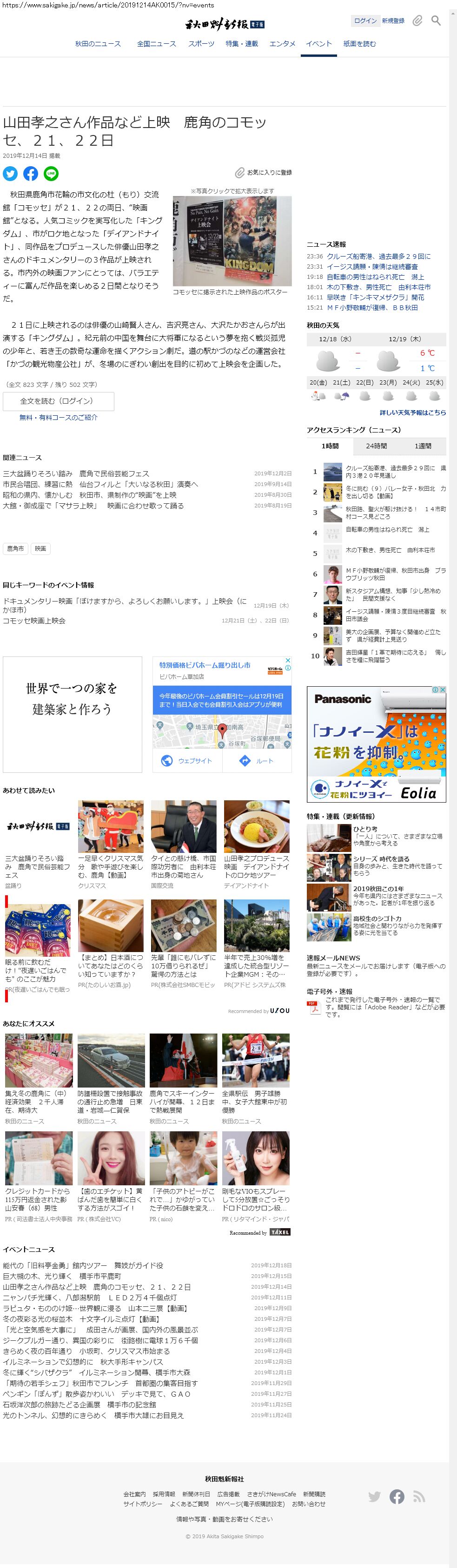 Webメディア 広告枠に赤枠付き