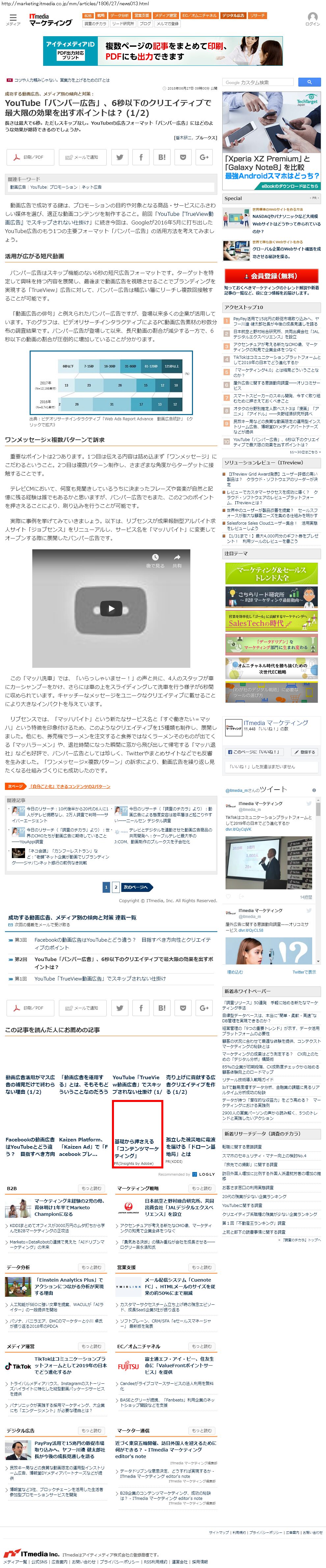 Webメディア 広告枠に赤枠付き