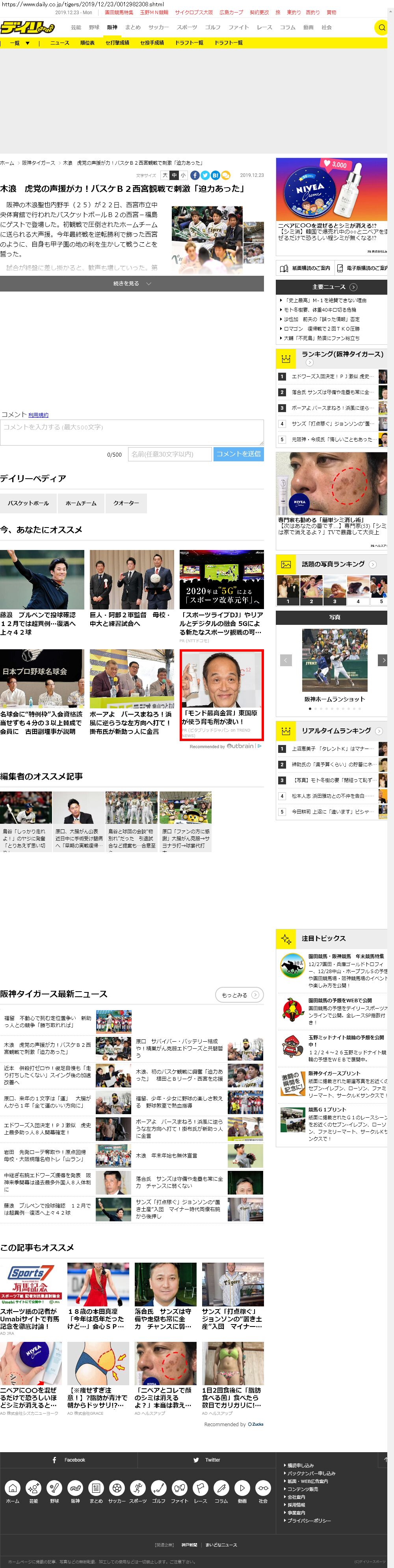 Webメディア 広告枠に赤枠付き