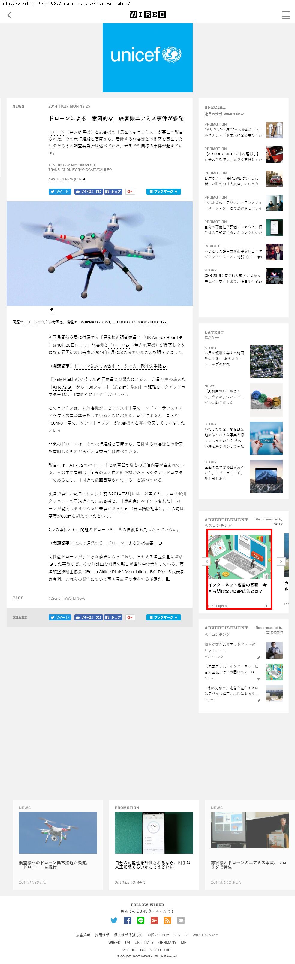 Webメディア 広告枠に赤枠付き