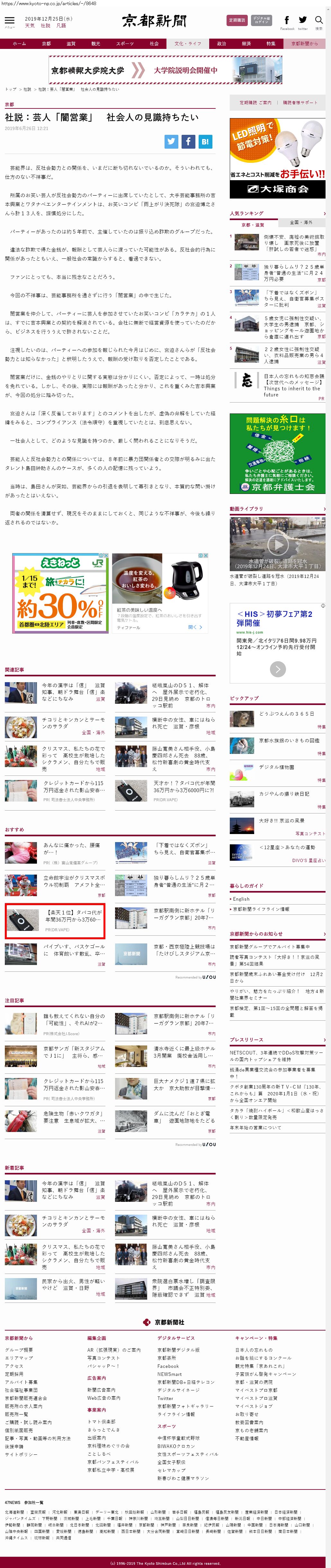 Webメディア 広告枠に赤枠付き