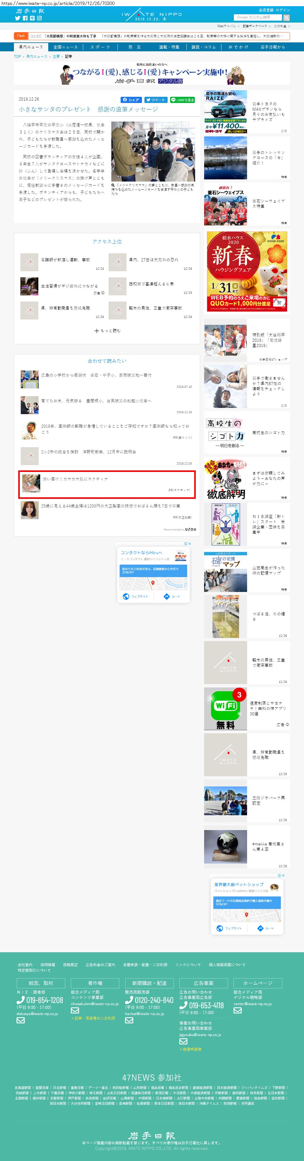 Webメディア 広告枠に赤枠付き