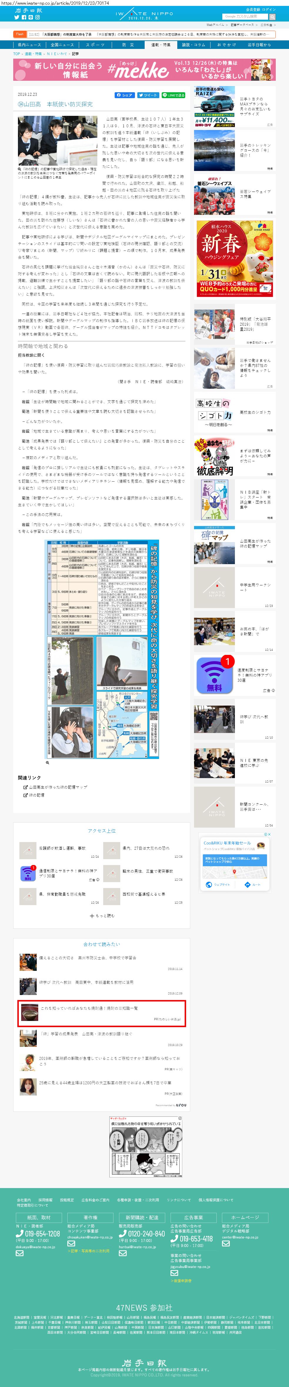 Webメディア 広告枠に赤枠付き