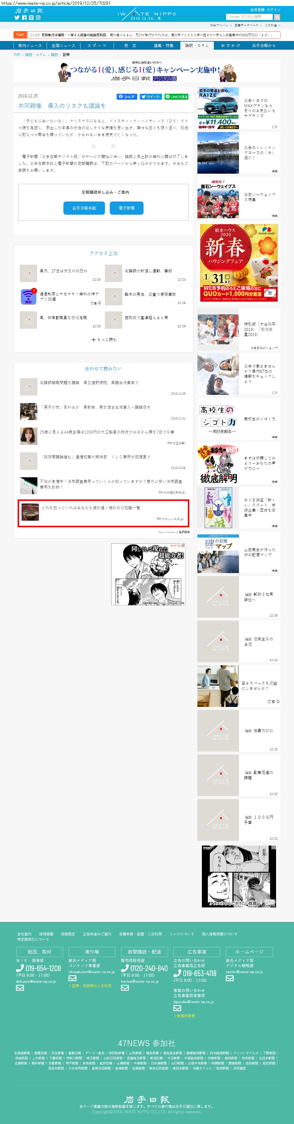 Webメディア 広告枠に赤枠付き