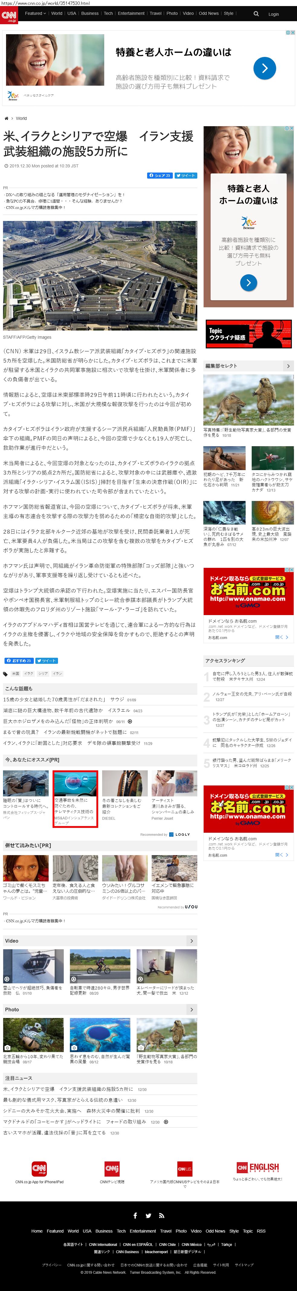 Webメディア 広告枠に赤枠付き