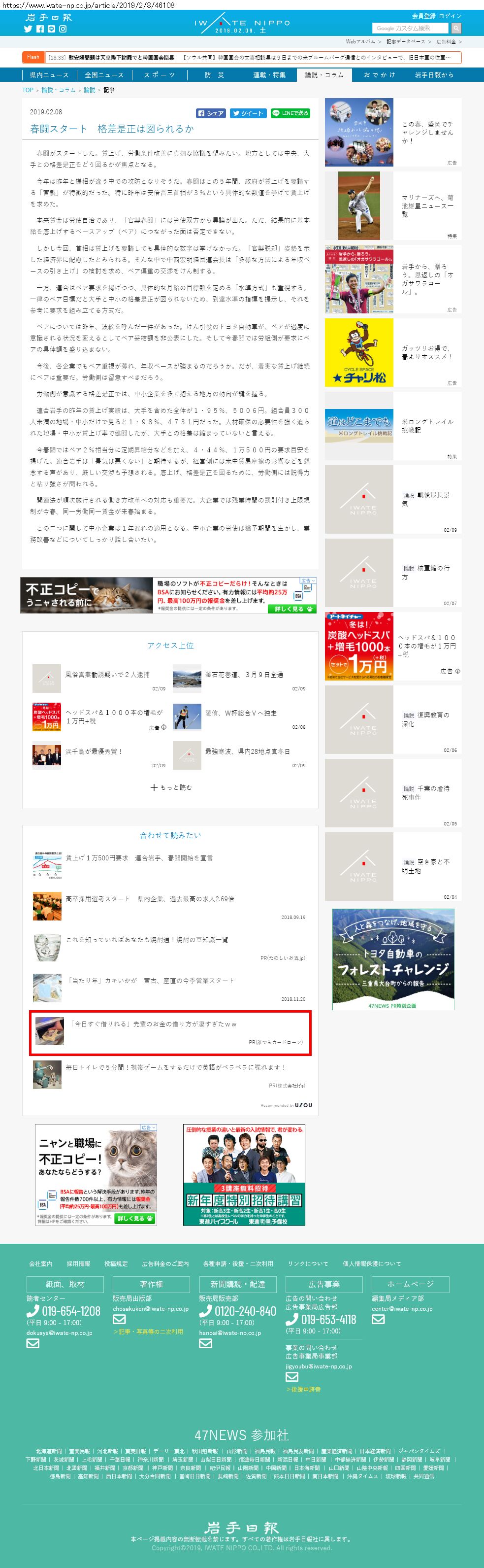 Webメディア 広告枠に赤枠付き