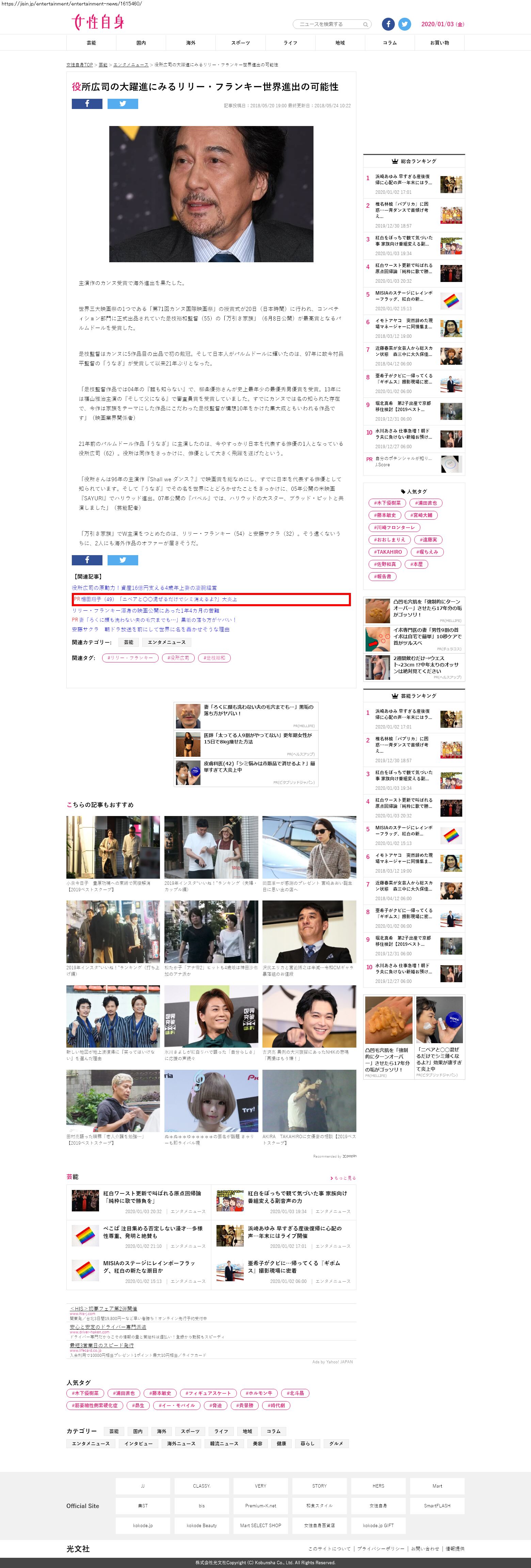 Webメディア 広告枠に赤枠付き