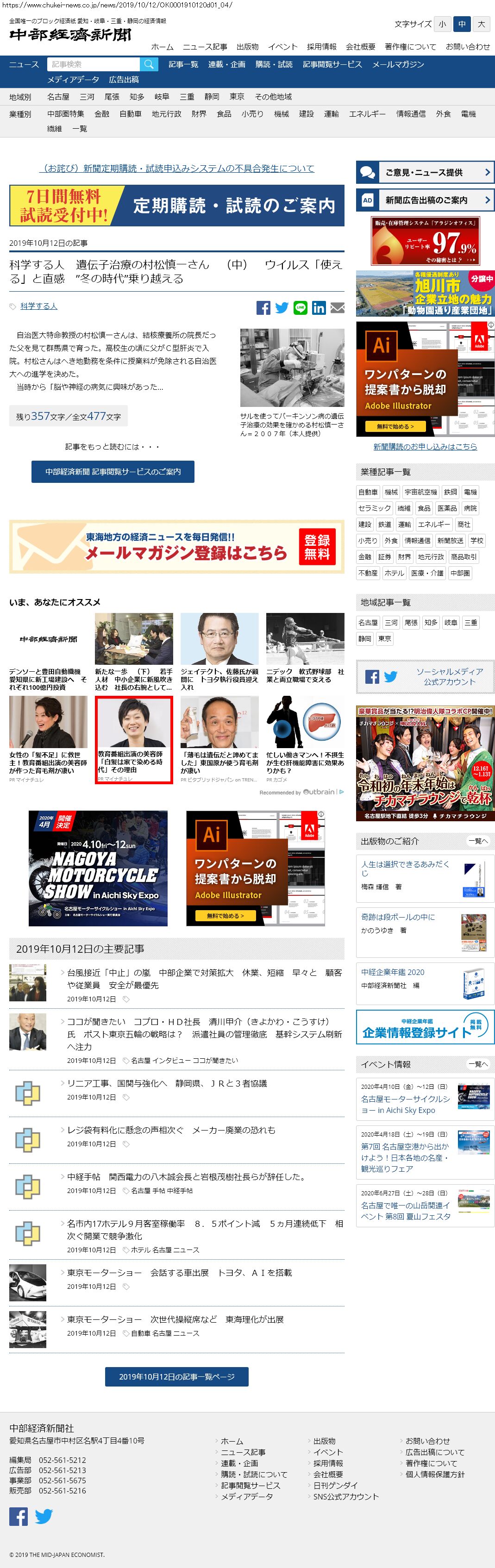 Webメディア 広告枠に赤枠付き