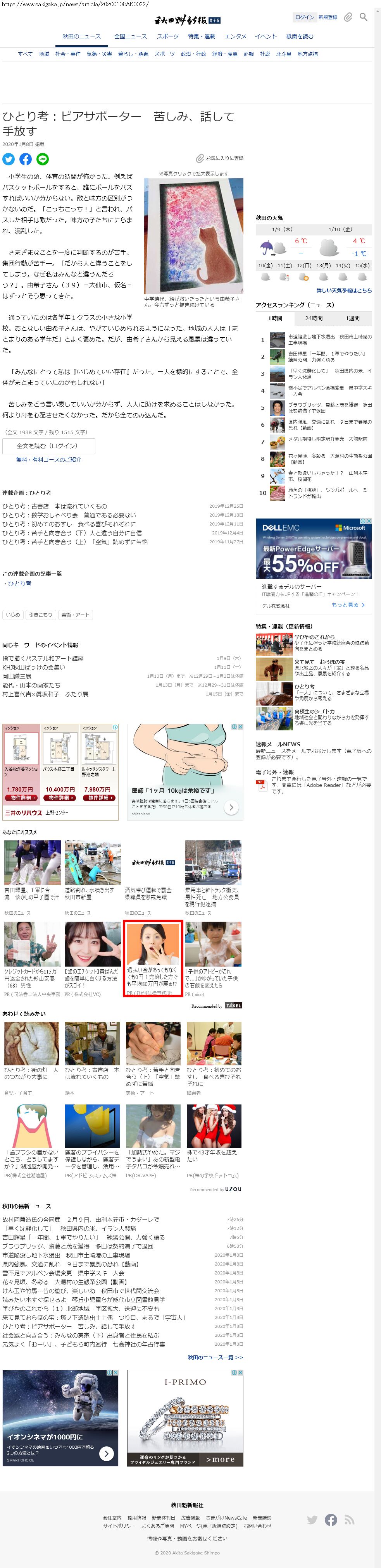 Webメディア 広告枠に赤枠付き