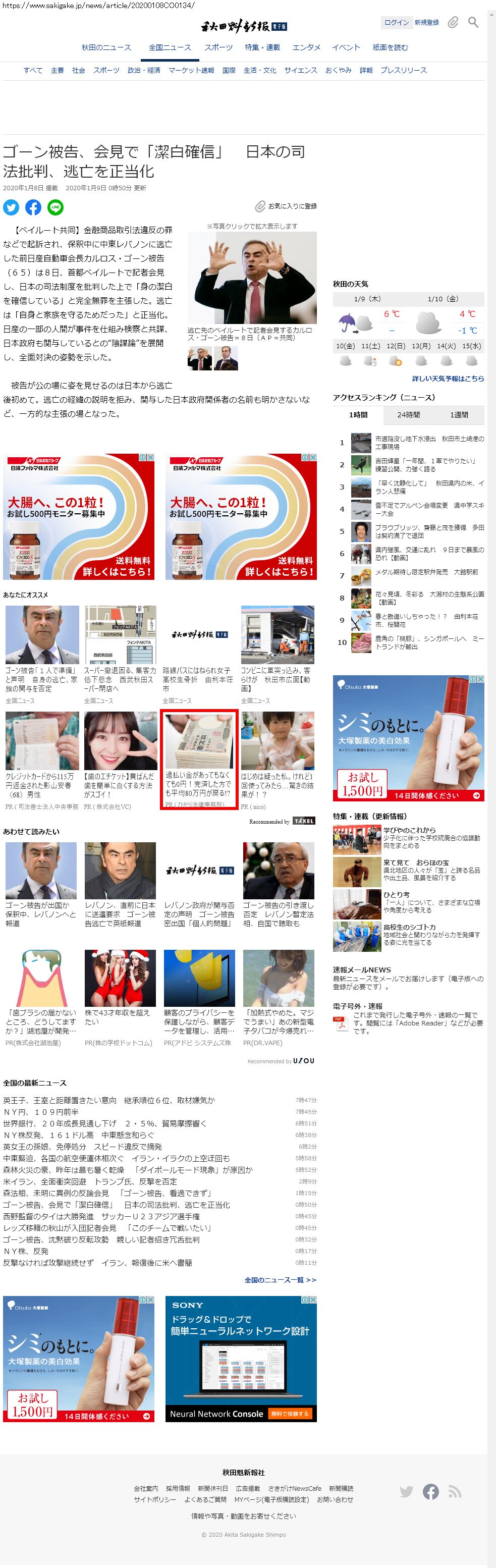 Webメディア 広告枠に赤枠付き