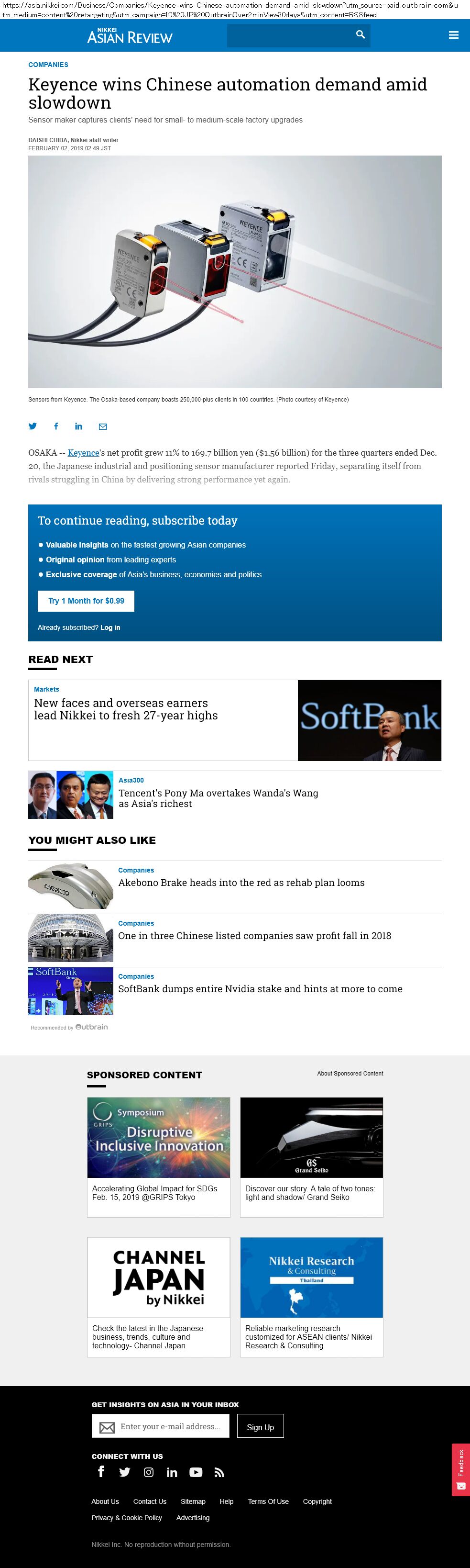 outbrain かつ asia.nikkei.com でガチャ