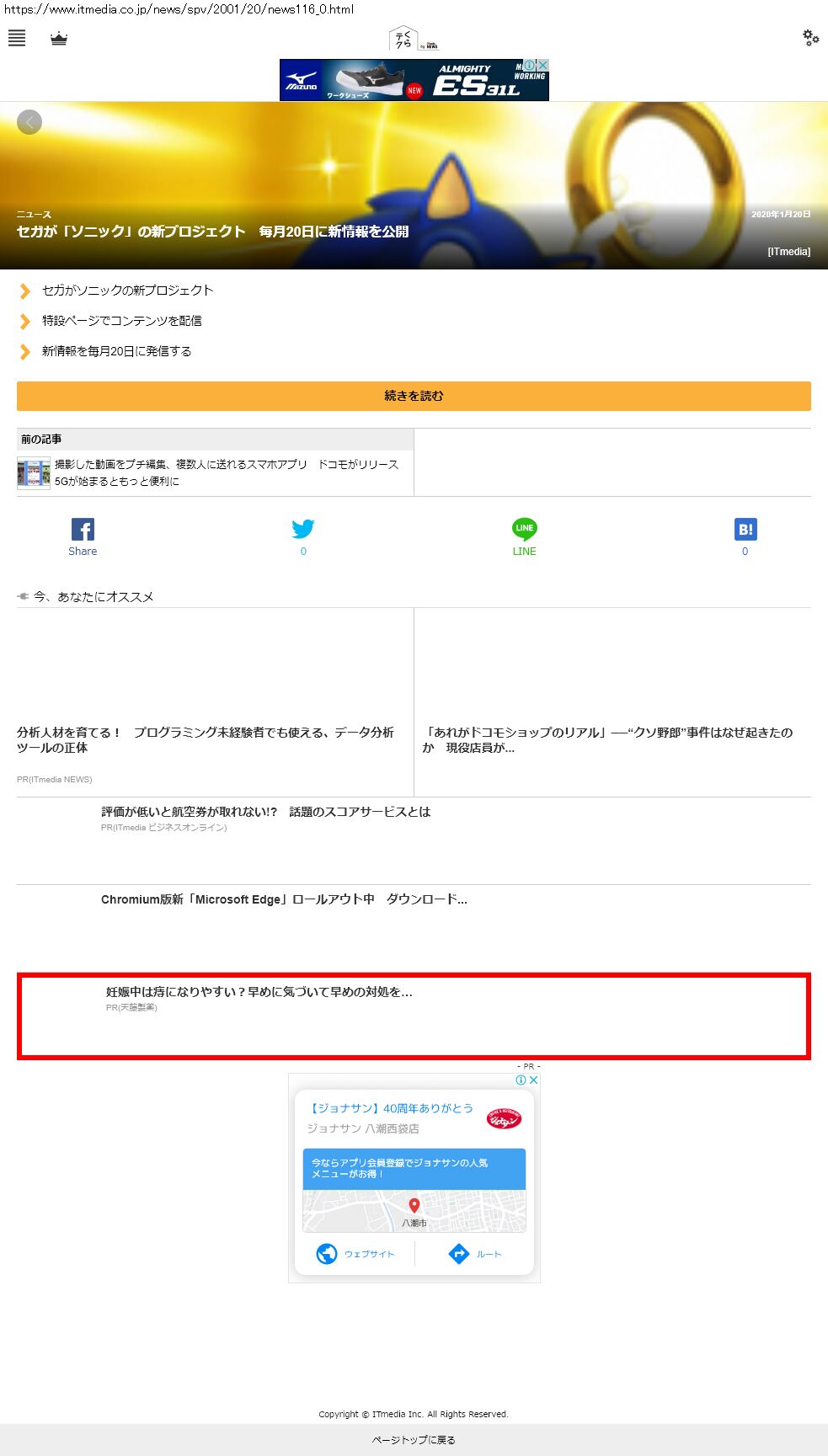 Webメディア 広告枠に赤枠付き