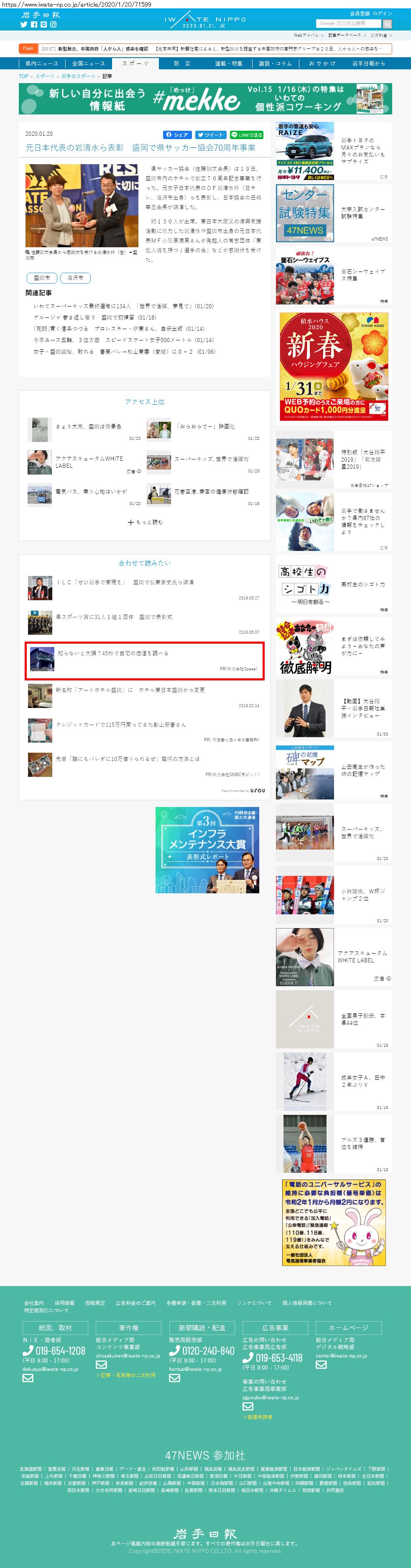 Webメディア 広告枠に赤枠付き