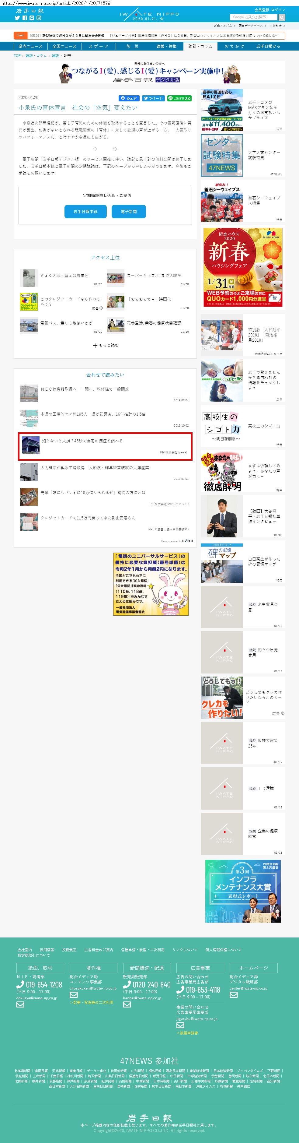 Webメディア 広告枠に赤枠付き