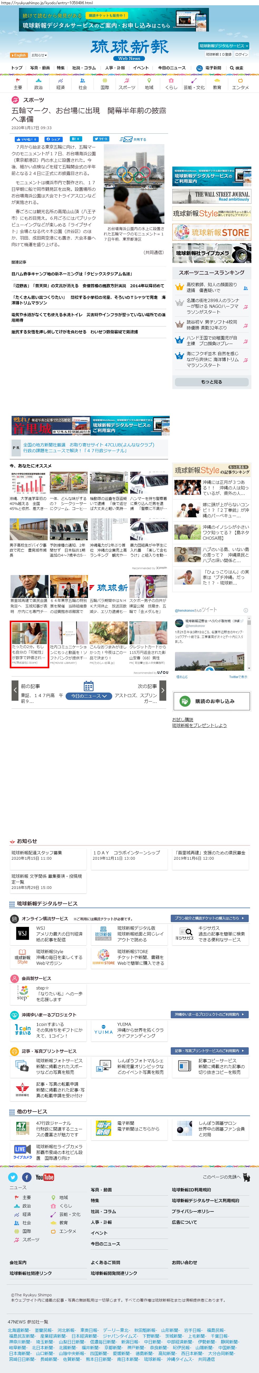 Webメディア 広告枠に赤枠付き