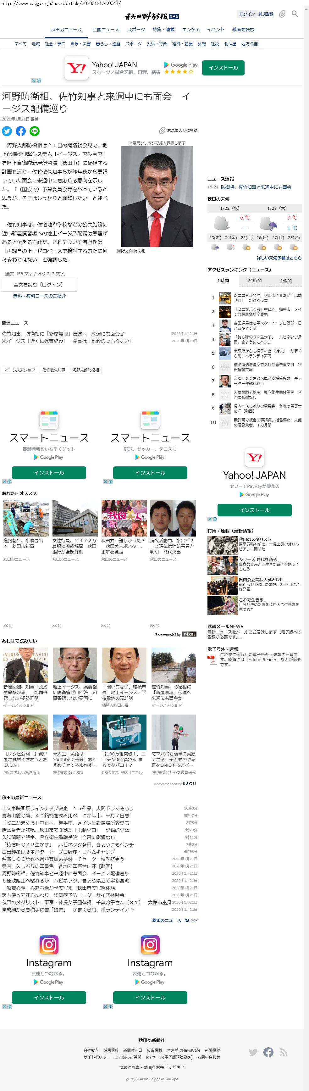 Webメディア 広告枠に赤枠付き