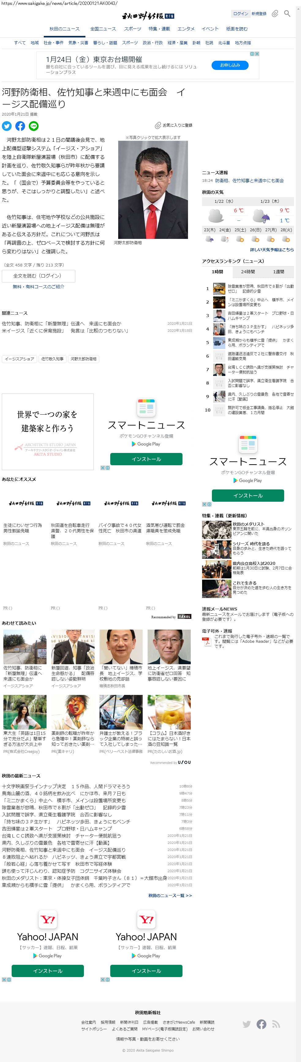 Webメディア 広告枠に赤枠付き