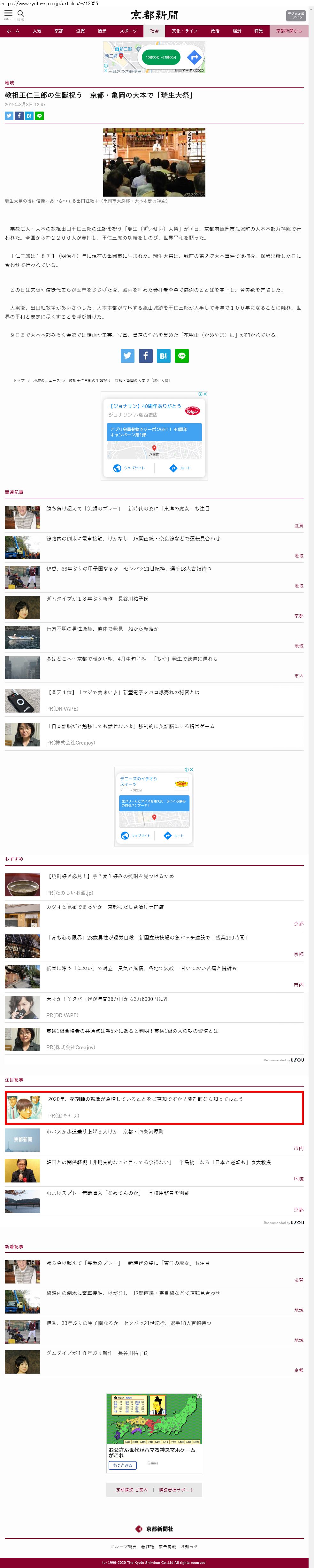 Webメディア 広告枠に赤枠付き