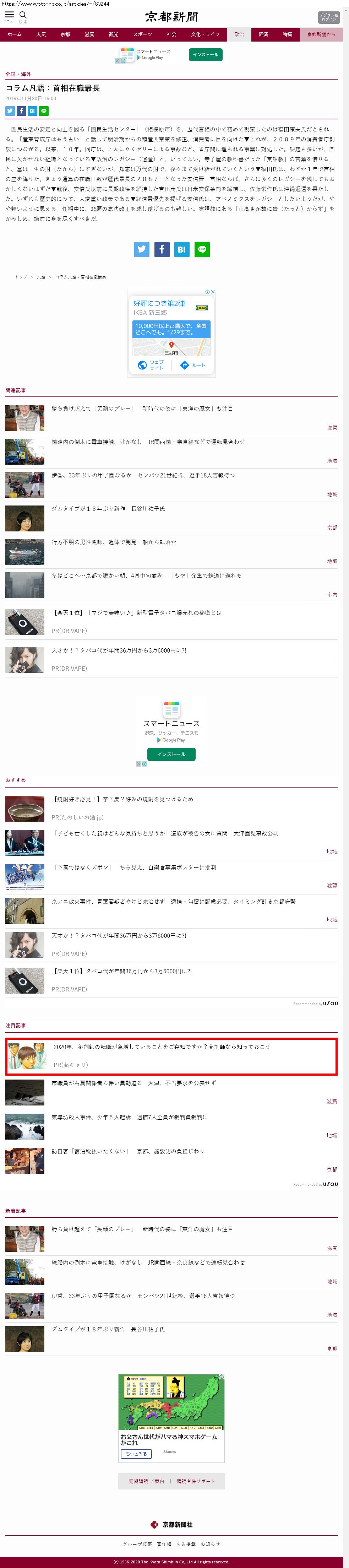 Webメディア 広告枠に赤枠付き