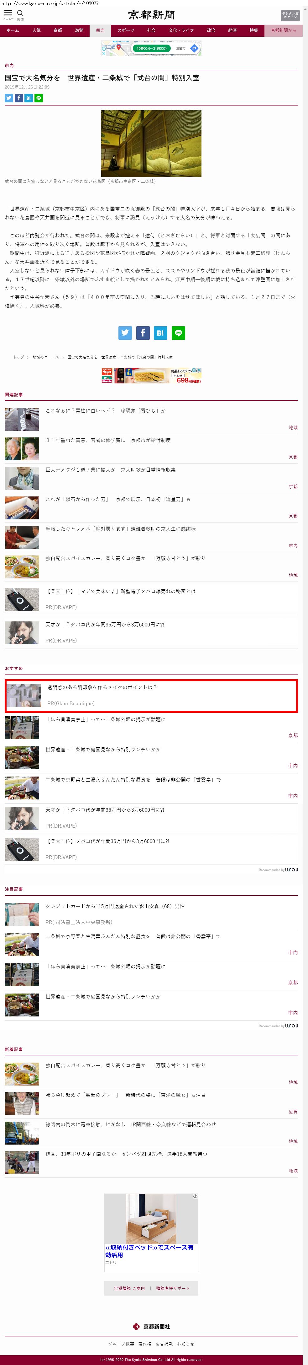 Webメディア 広告枠に赤枠付き