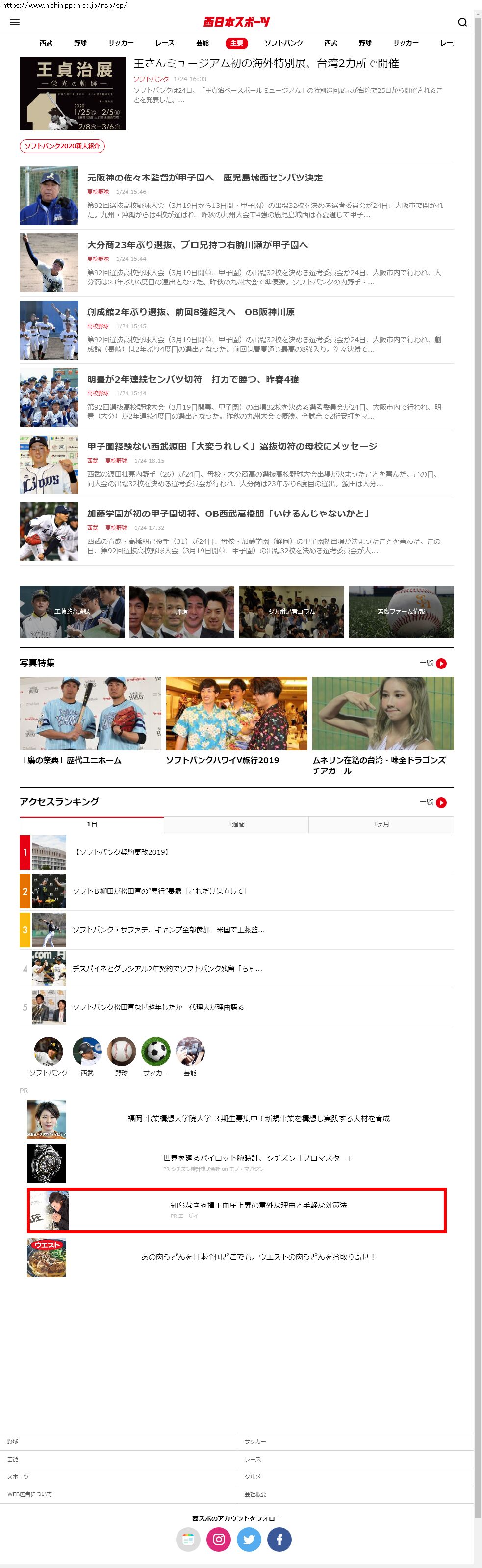 Webメディア 広告枠に赤枠付き