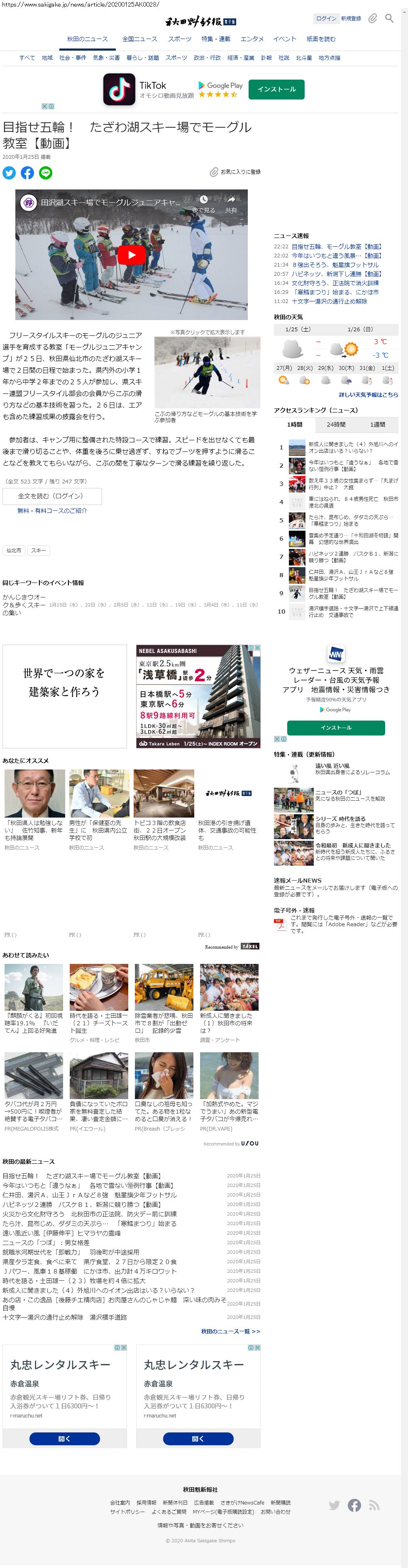Webメディア 広告枠に赤枠付き