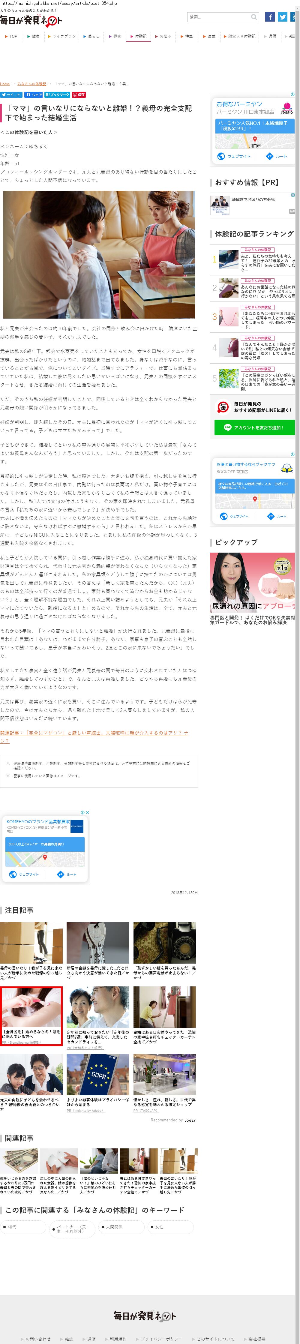 Webメディア 広告枠に赤枠付き