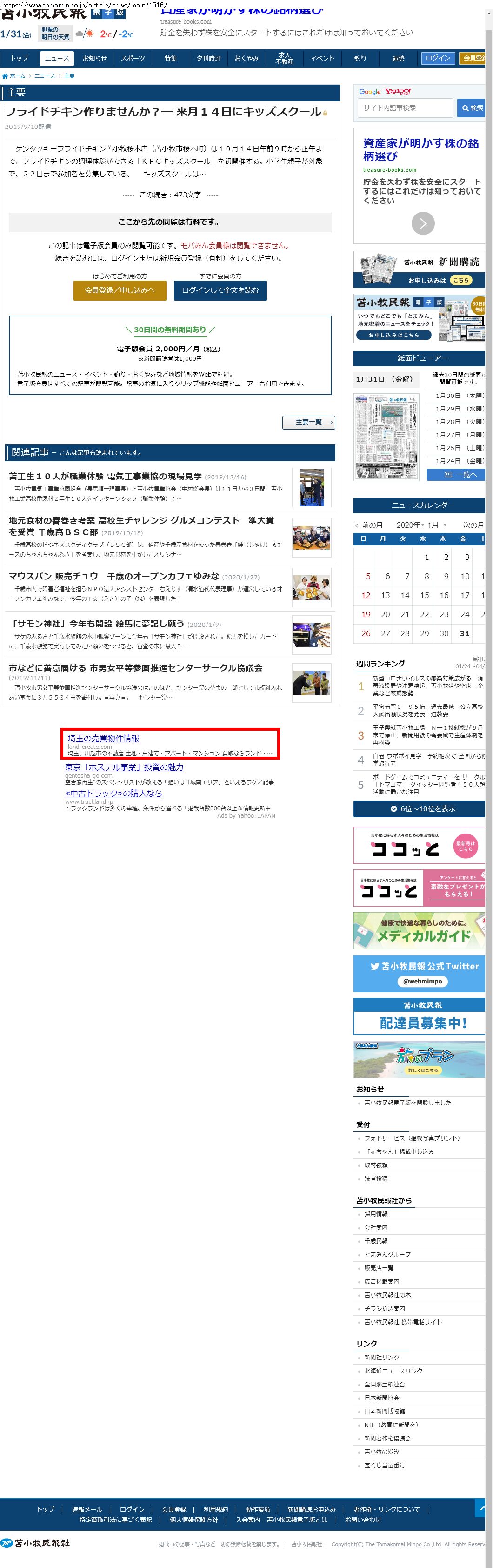 Webメディア 広告枠に赤枠付き