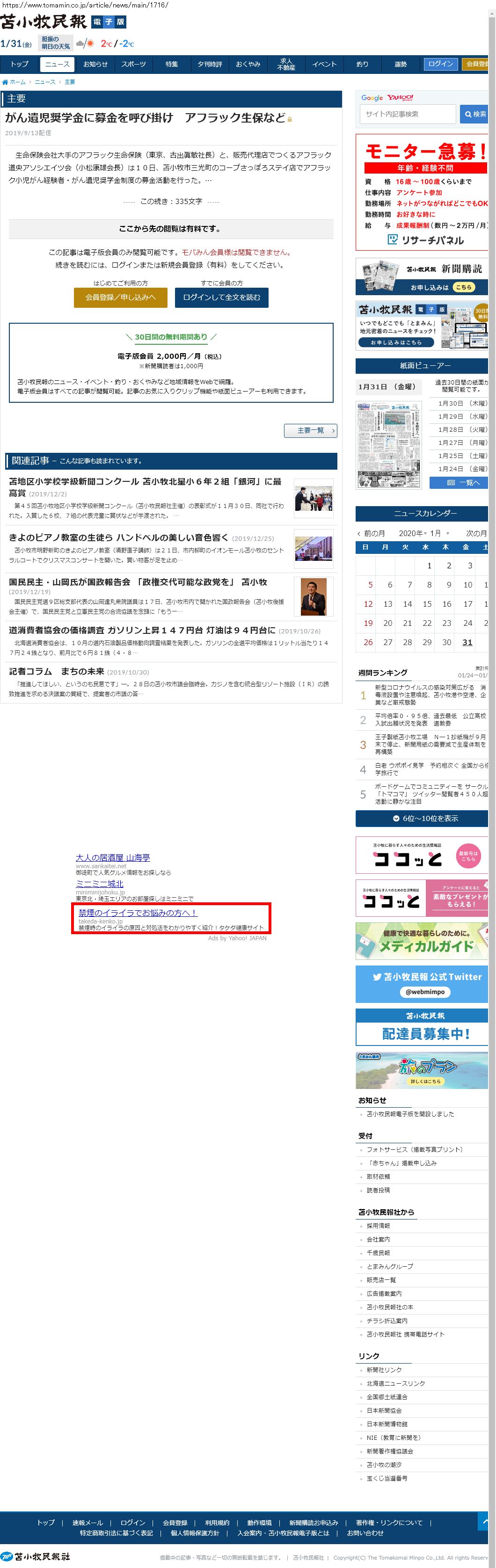 Webメディア 広告枠に赤枠付き