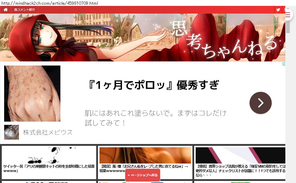 Webメディア 広告枠に赤枠付き