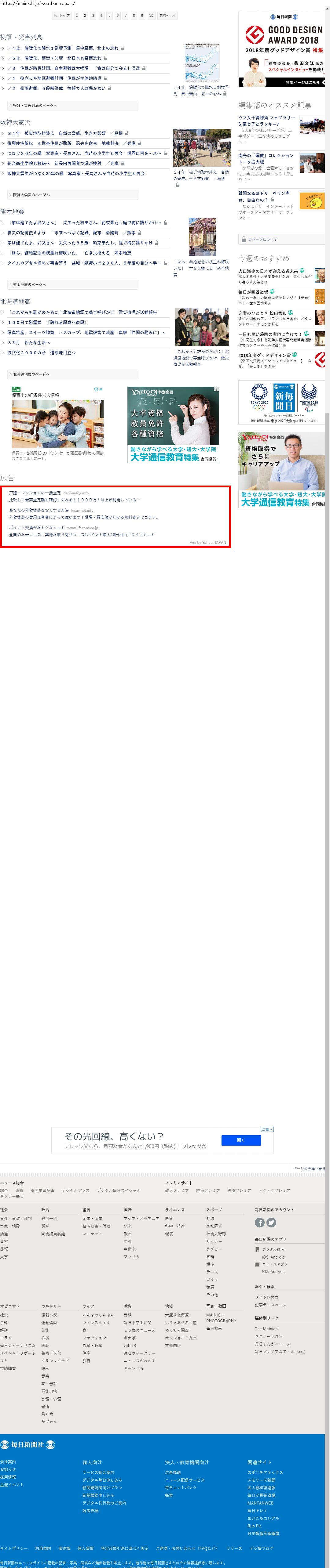 Webメディア 広告枠に赤枠付き
