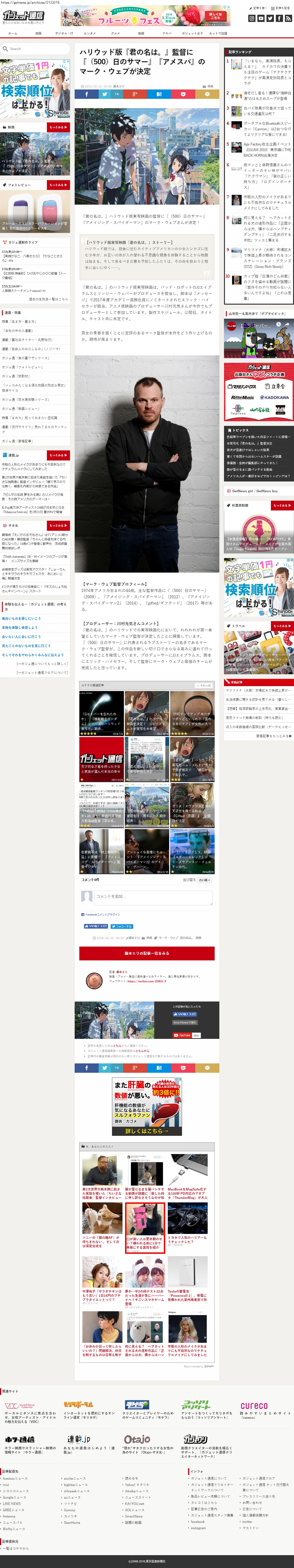Webメディア 広告枠に赤枠付き