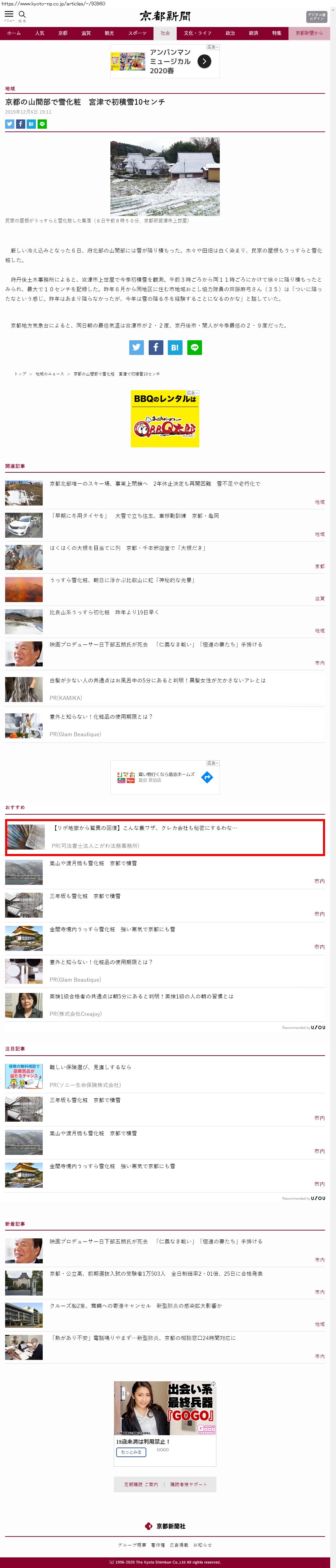 Webメディア 広告枠に赤枠付き