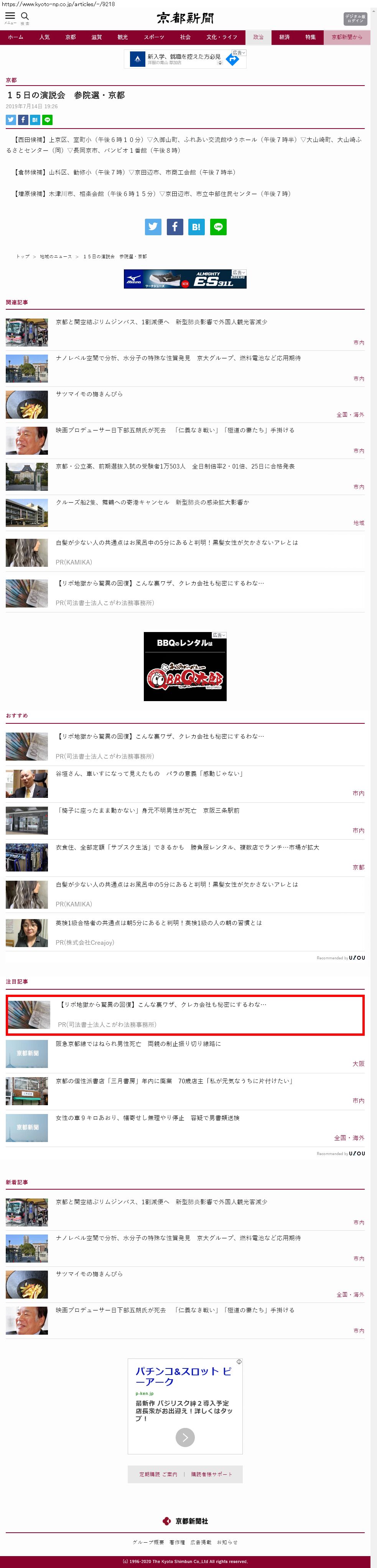 Webメディア 広告枠に赤枠付き