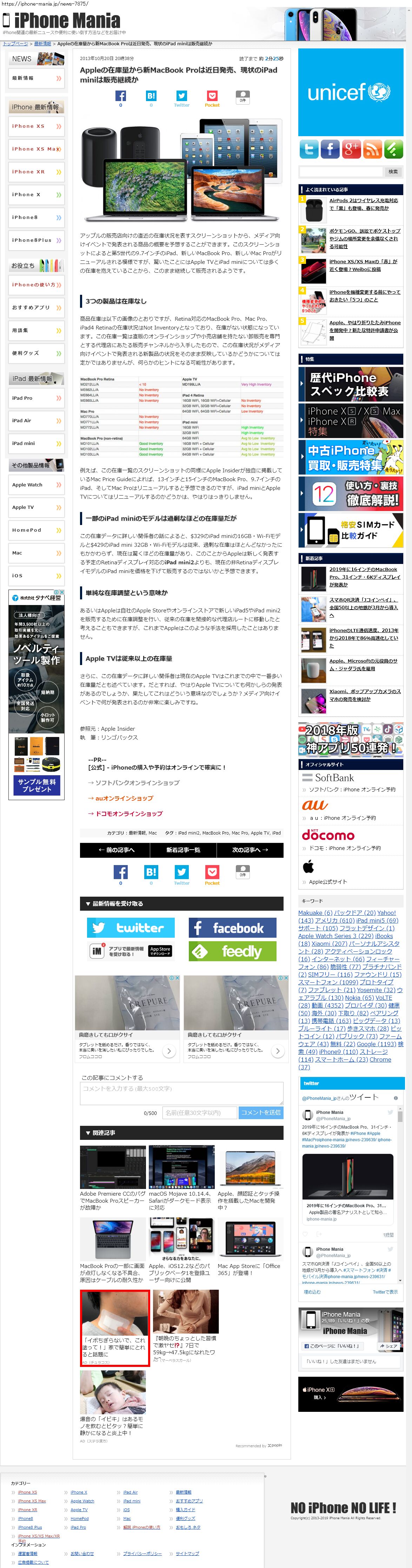 Webメディア 広告枠に赤枠付き