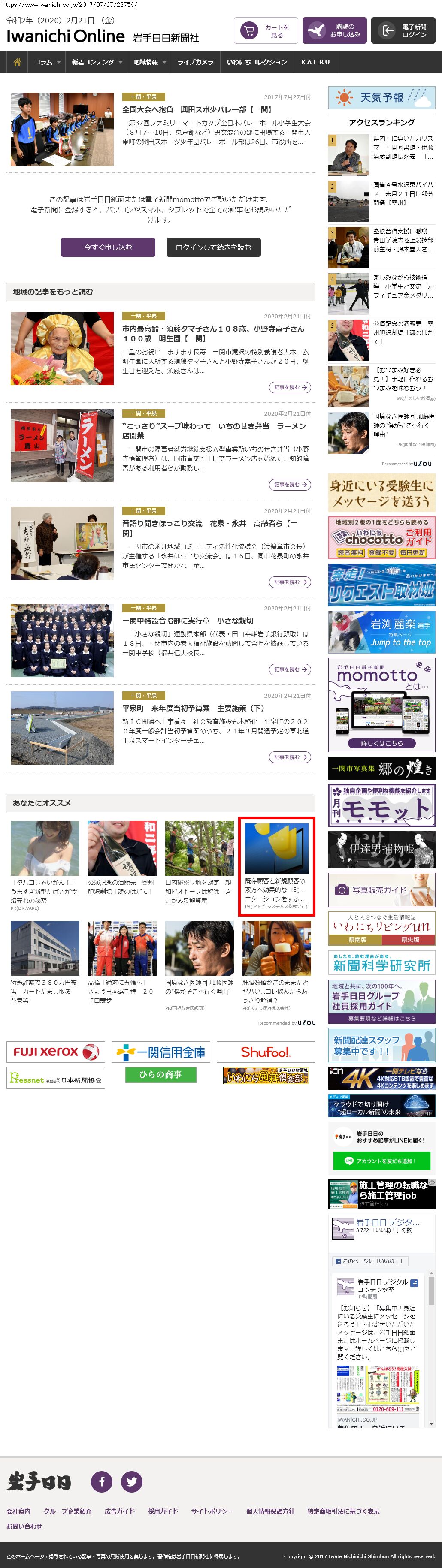 Webメディア 広告枠に赤枠付き
