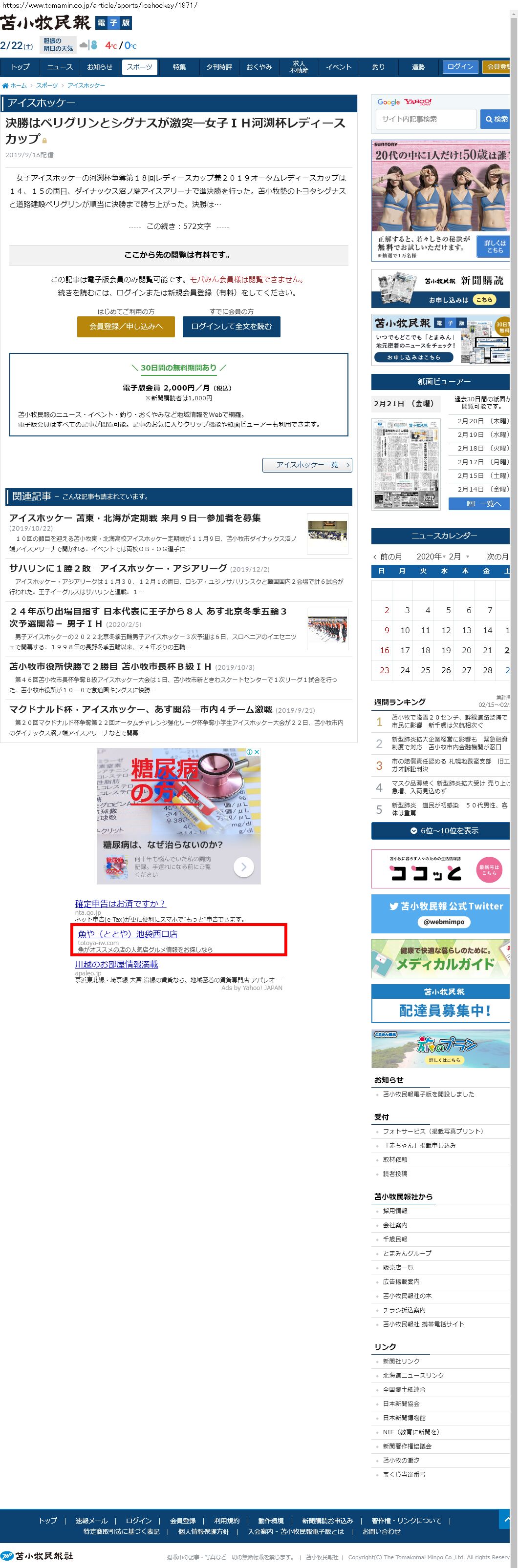 Webメディア 広告枠に赤枠付き