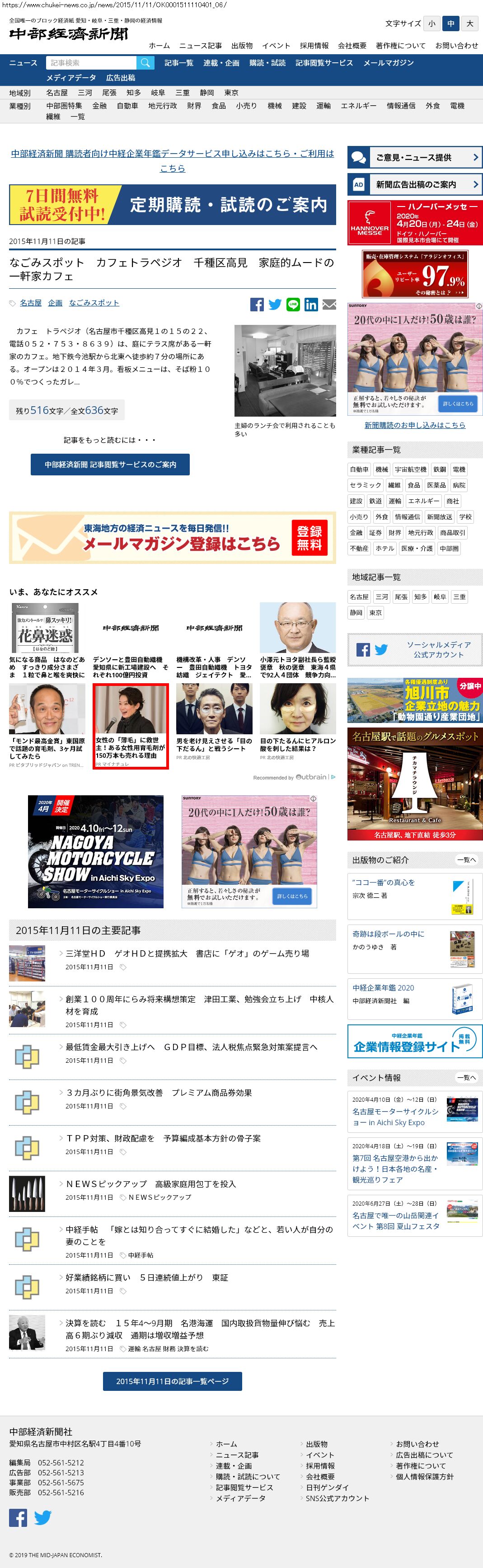 Webメディア 広告枠に赤枠付き
