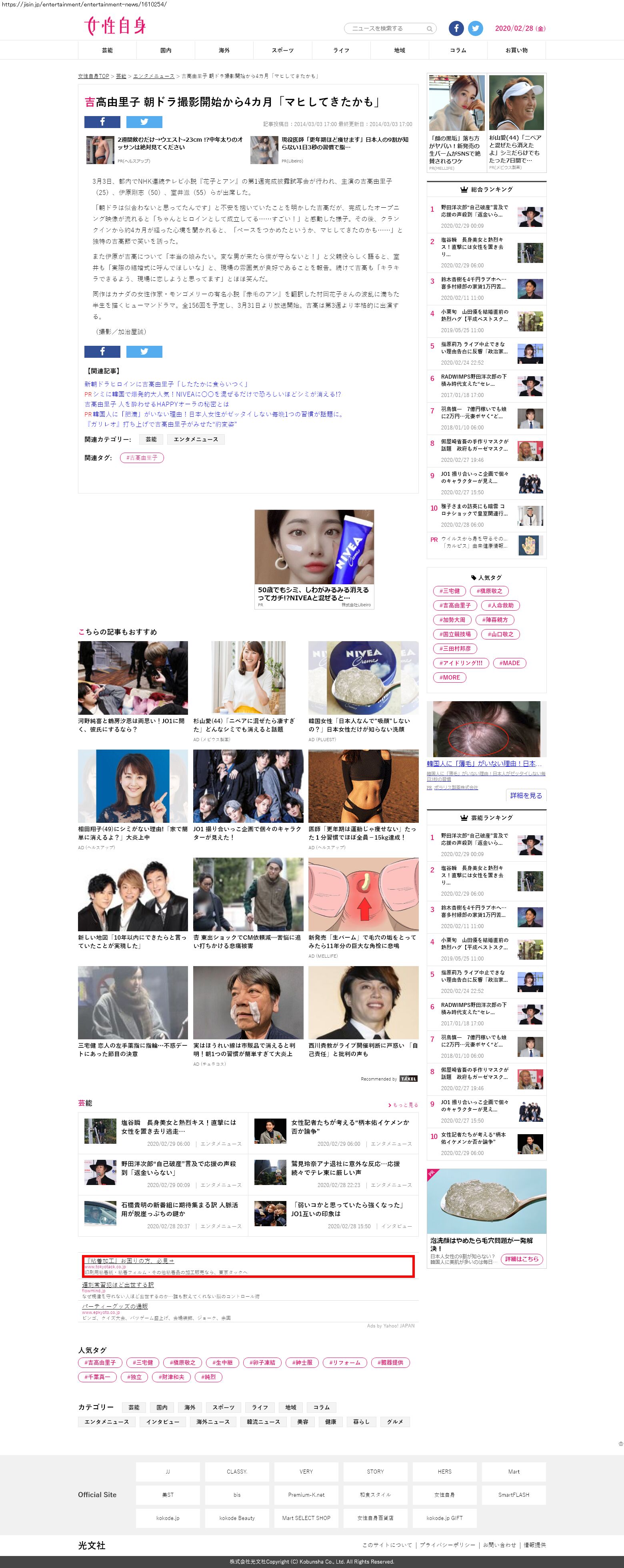 Webメディア 広告枠に赤枠付き