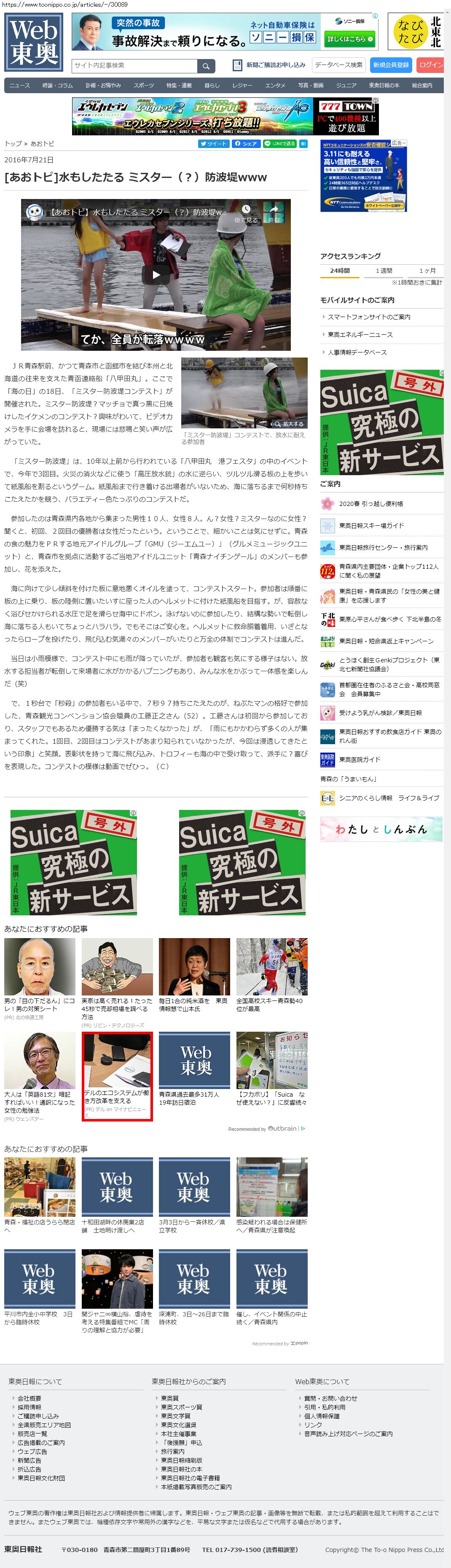 Webメディア 広告枠に赤枠付き
