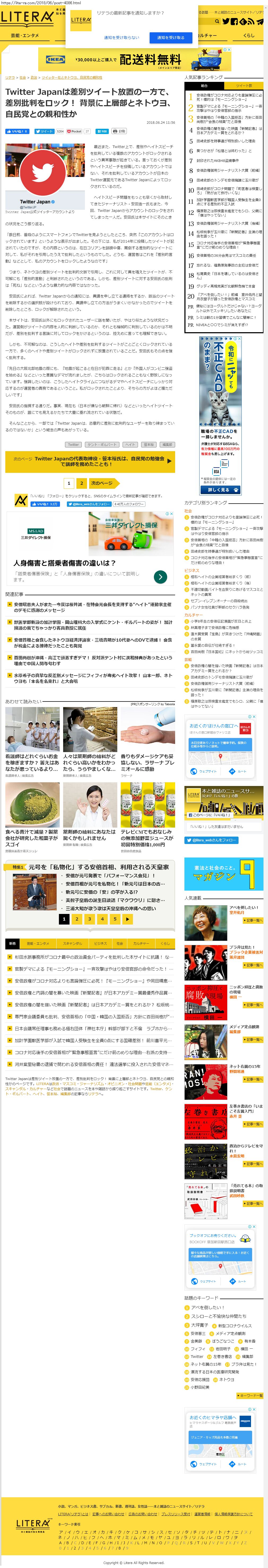Webメディア 広告枠に赤枠付き