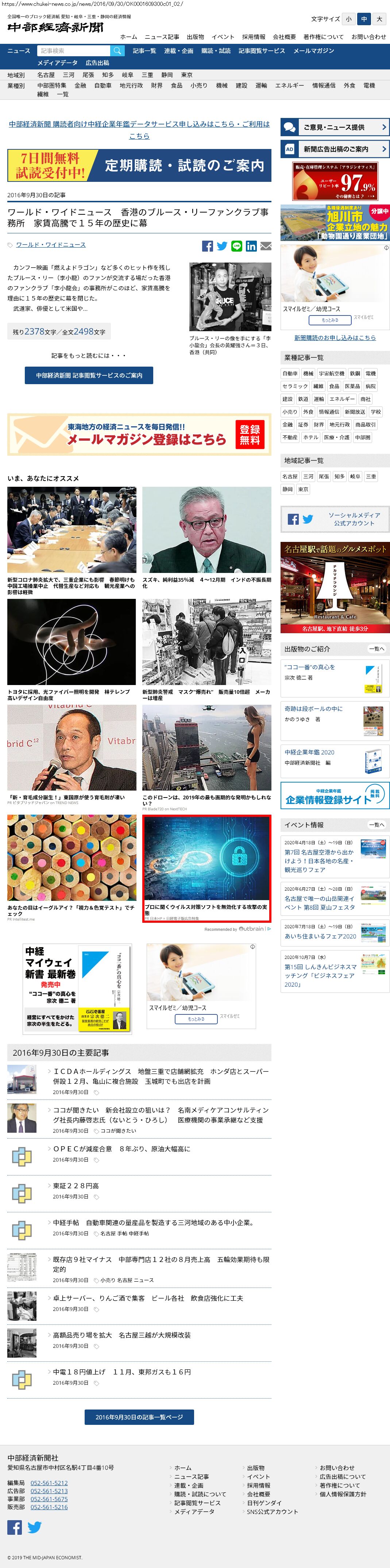 Webメディア 広告枠に赤枠付き