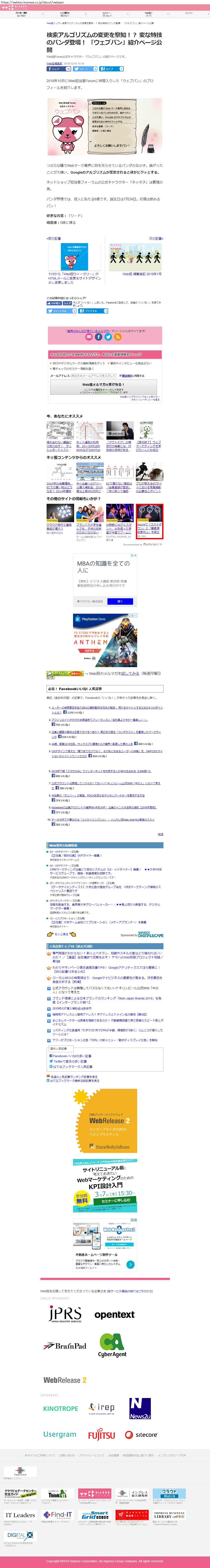 Webメディア 広告枠に赤枠付き