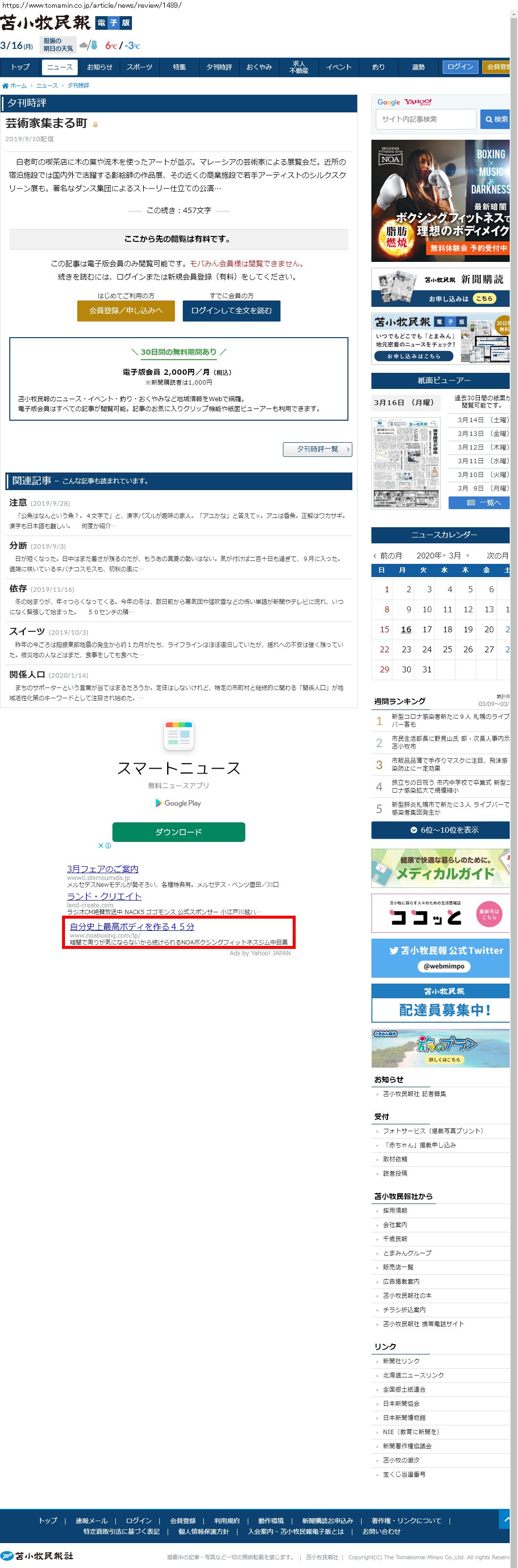 Webメディア 広告枠に赤枠付き