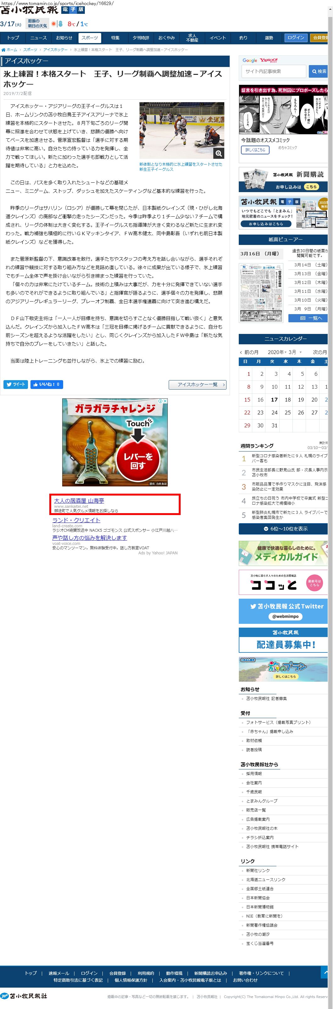 Webメディア 広告枠に赤枠付き