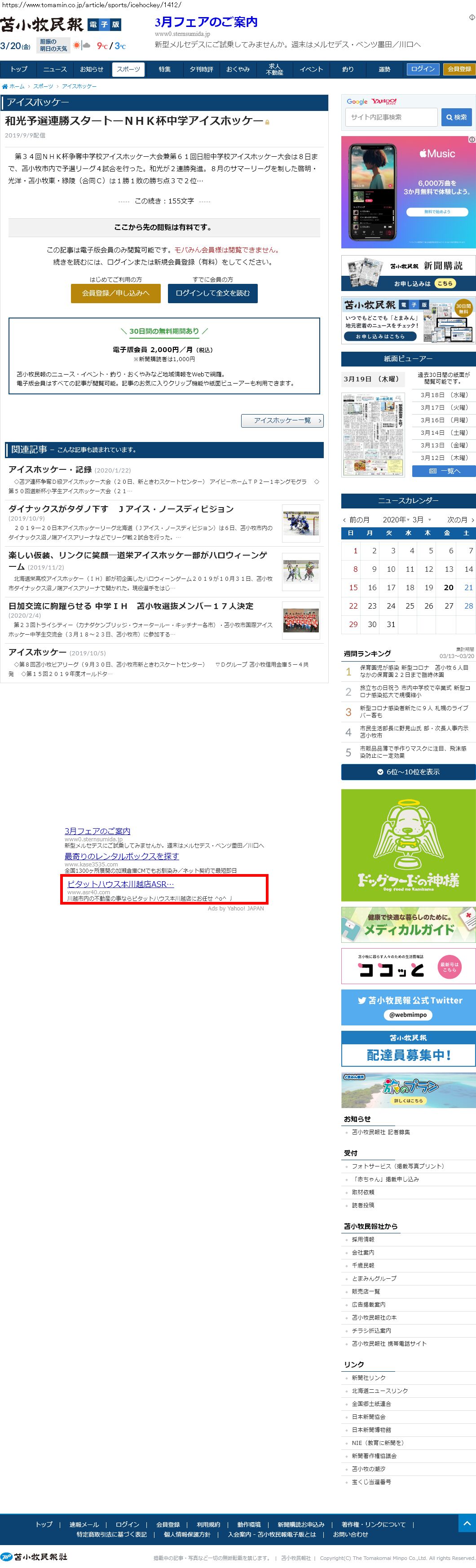 Webメディア 広告枠に赤枠付き
