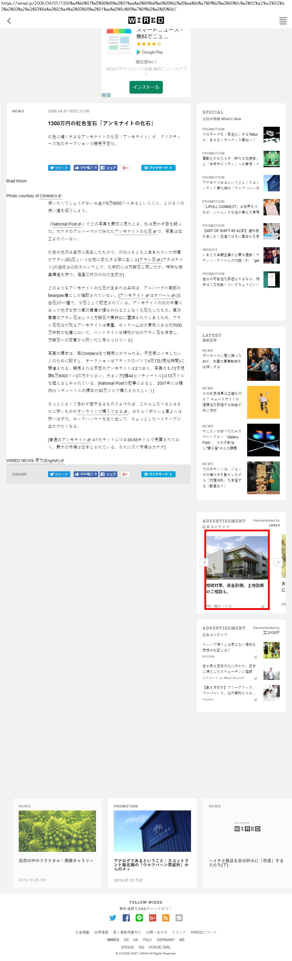 Webメディア 広告枠に赤枠付き