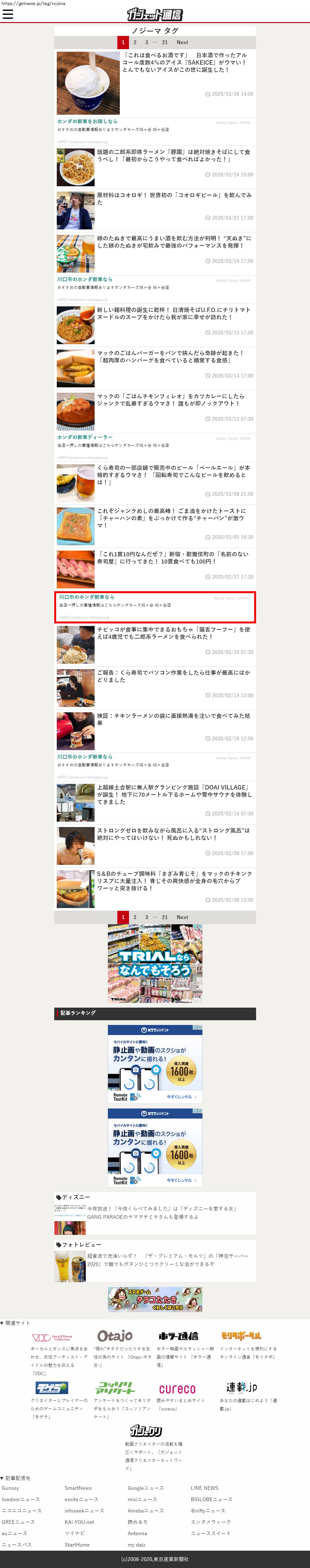 2019年1月~2020年12月のレコメンドウィジェット広告を記録しました。