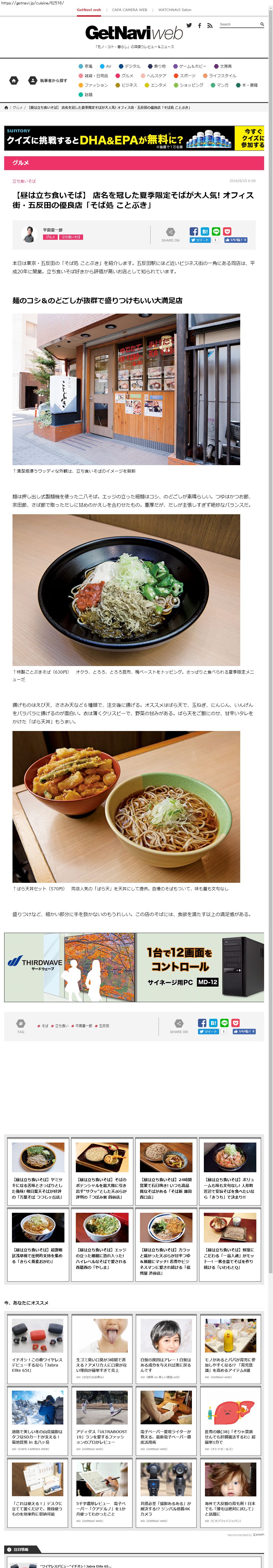 Webメディア 広告枠に赤枠付き